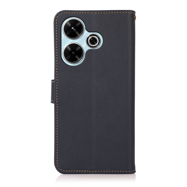 Para Redmi 13 4G Khazneh Custer Texture Rfid Funda para Teléfono de Cuero Genuino (Azul)