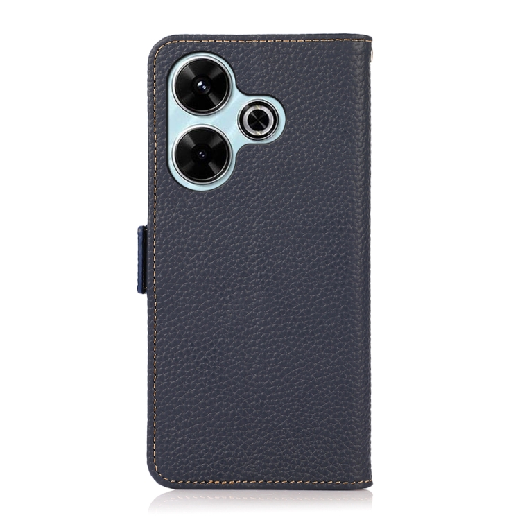 Para Redmi 13 4G Khazneh Funda para Teléfono Rfid de Cuero Genuino Litchi Lateral Magnético (Azul)