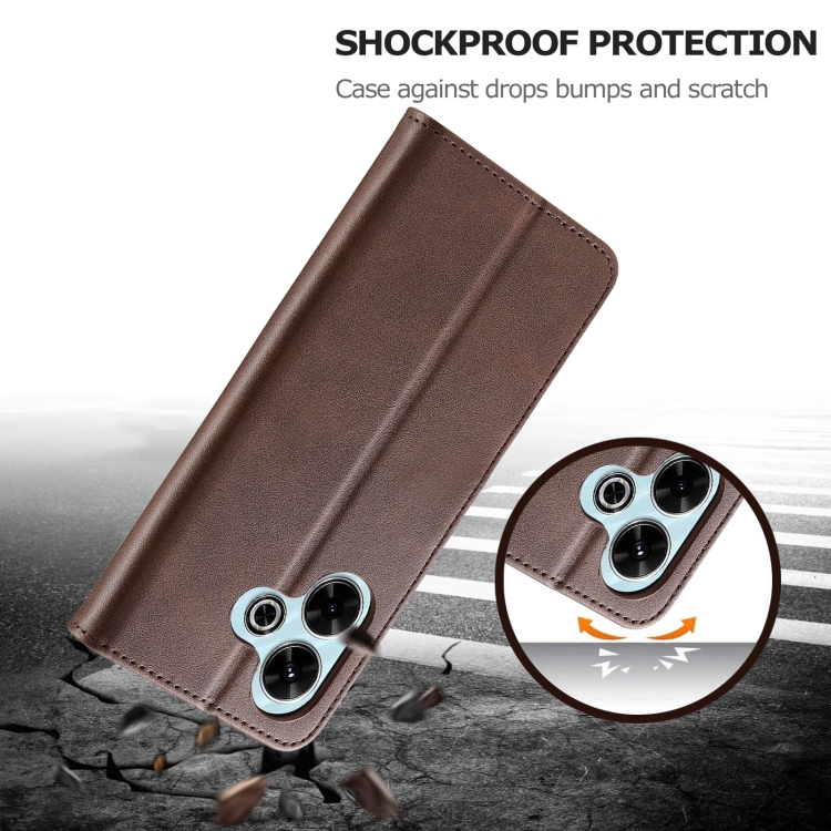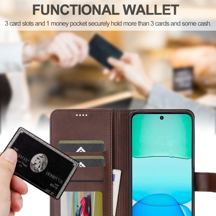Para Redmi 13 4G Lc.Imeeke Funda para Teléfono de Cuero con Textura de Becerro (Café)