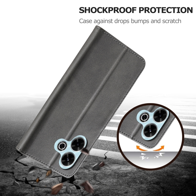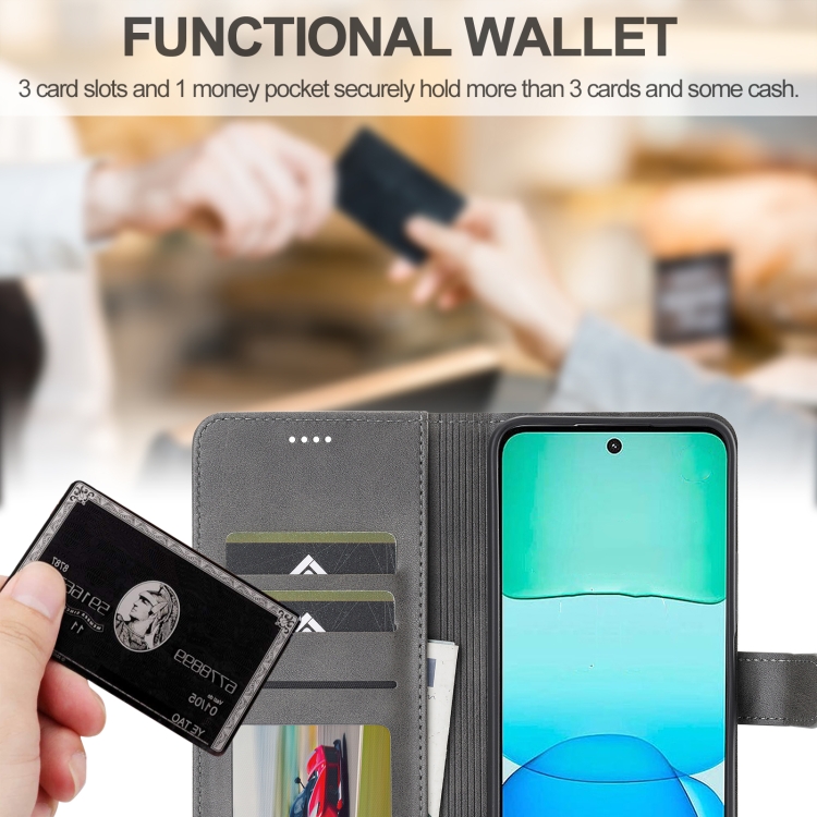 Para Redmi 13 4G Lc.Imeeke Funda para Teléfono de Cuero con Textura de Becerro (Gris)