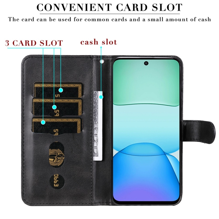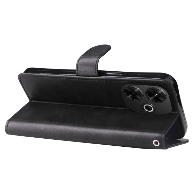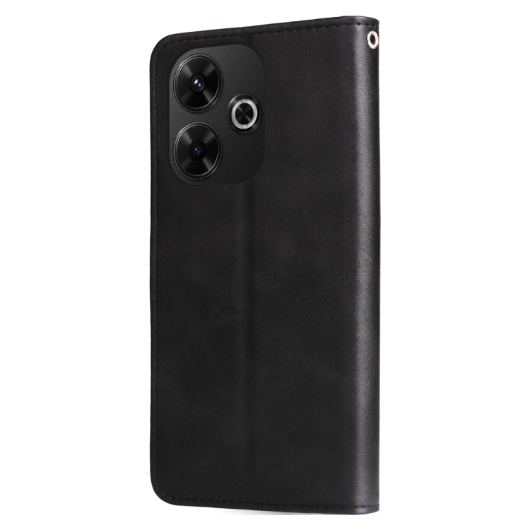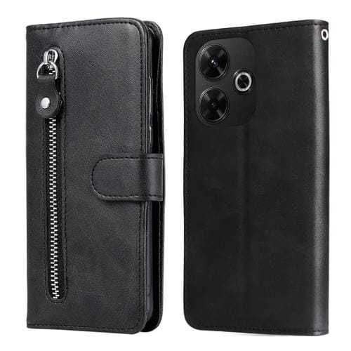 Para Redmi 13 4G / Redmi Note 13R Funda para Teléfono de Cuero con Cremallera y Textura de Becerro a la Moda (Negro)