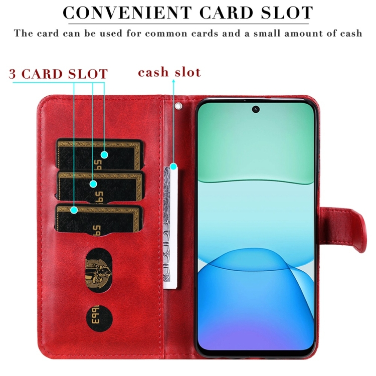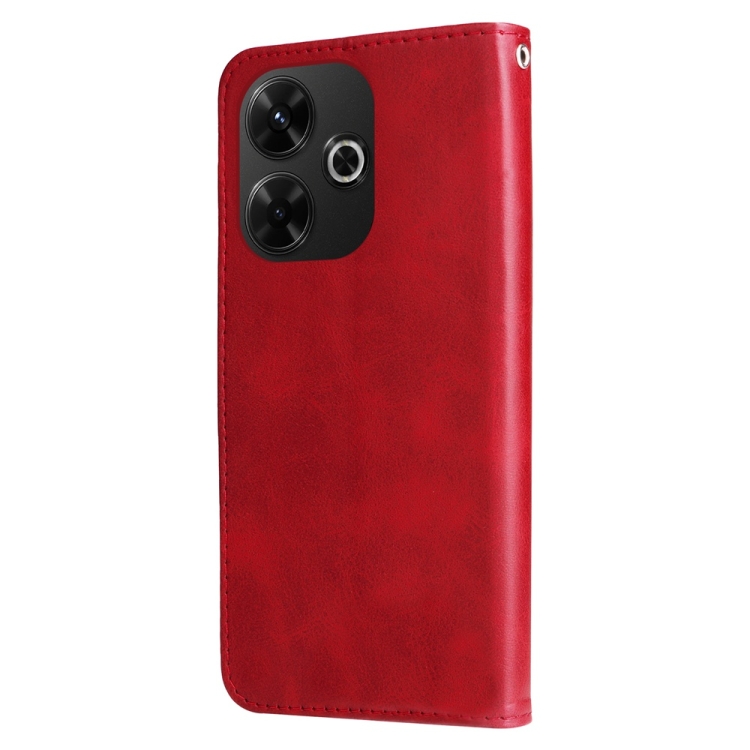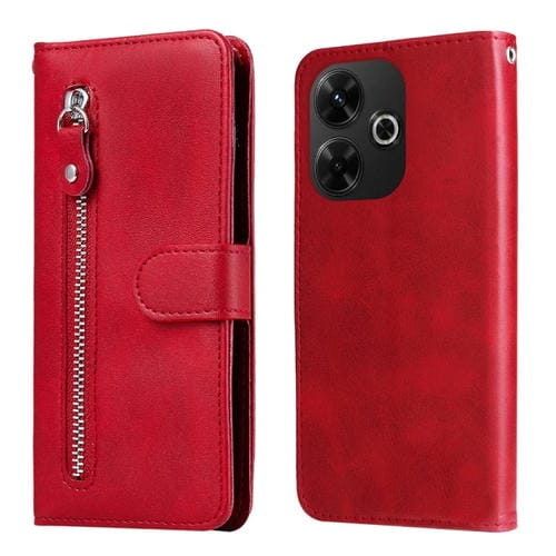 Para Redmi 13 4G / Redmi Note 13R Funda para Teléfono de Cuero con Cremallera y Textura de Becerro a la Moda (Rojo)