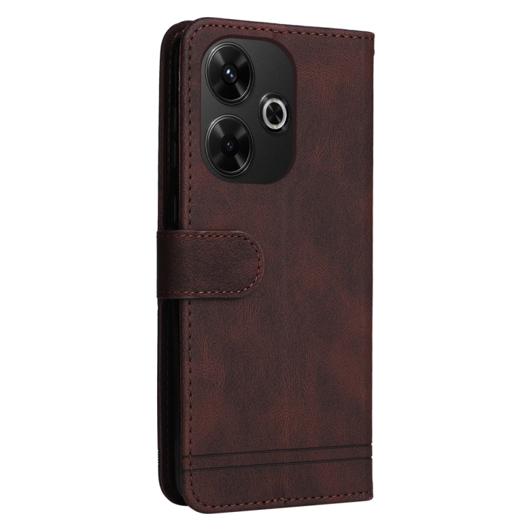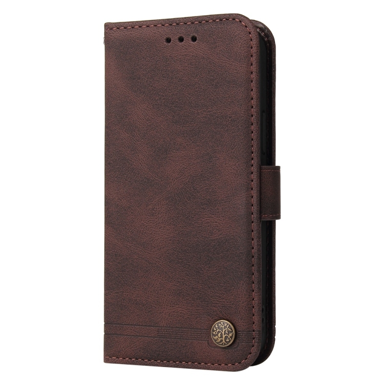 Para Redmi 13 4G / Redmi Note 13R Skin Feel Life Tree Funda de Cuero con Botón de Metal (Marrón)