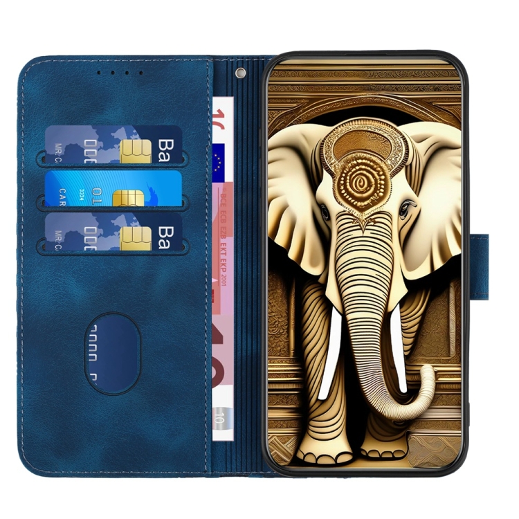 Para Redmi 13 4G Yx0060 Funda de Cuero para Teléfono con Relieve de Cabeza de Elefante y Cordón (Azul Real)