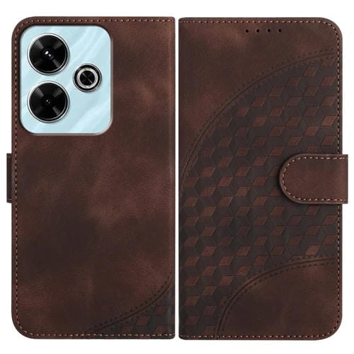 Para Redmi 13 4G Yx0060 Funda de Cuero para Teléfono con Relieve y Cabeza de Elefante con Cordón (Café)