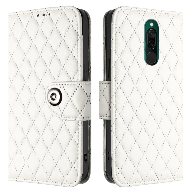 Para Redmi 8 Funda de Cuero con Tapa con Textura Rómbica y Cordón (Blanco)