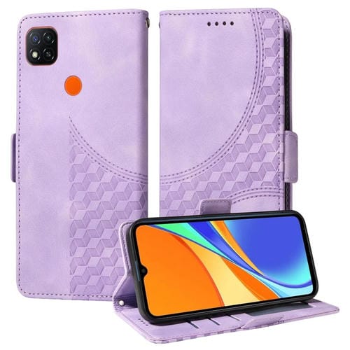 Para Redmi 9C / 9 India Funda para Teléfono de Cuero Estrellado con Rombos En Relieve (Púrpura)