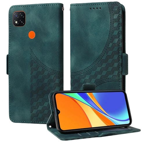 Para Redmi 9C / 9 India Funda para Teléfono de Cuero Estrellado con Rombos En Relieve (Verde)