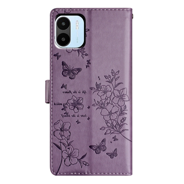 Para Redmi A1 Funda de Cuero para Teléfono con Mariposas y Flores (Púrpura)