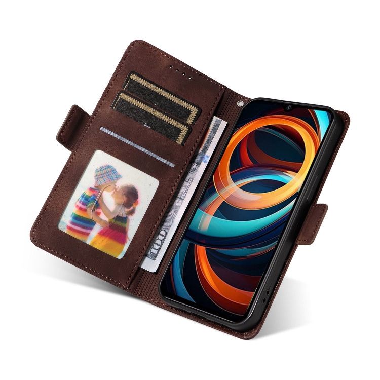Para Redmi A3 4G Funda de Teléfono de Cuero Estrellado con Rombo En Relieve Global (Marrón)