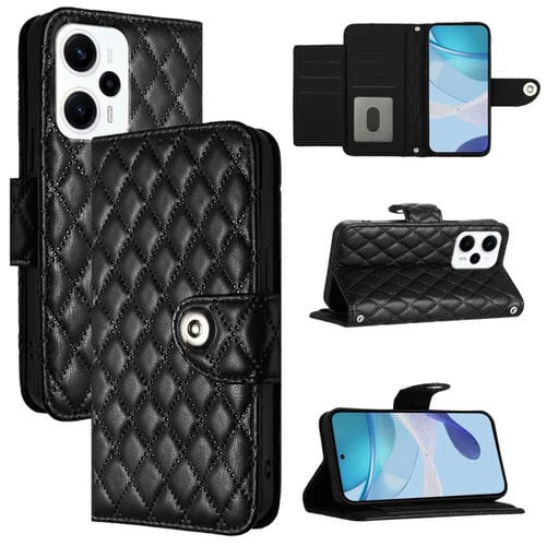 Para Redmi K50I Funda de Cuero con Tapa con Textura Romboidal y Cordón (Negro)