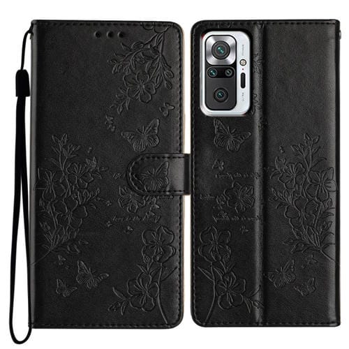 Para Redmi Note 10 Pro Funda de Cuero para Teléfono con Mariposas y Flores (Negro)