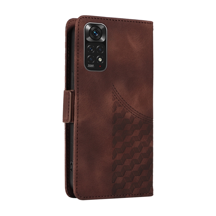 Para Redmi Note 11 4G / 11S Funda para Teléfono de Cuero Estrellado con Rombo En Relieve Global (Marrón)