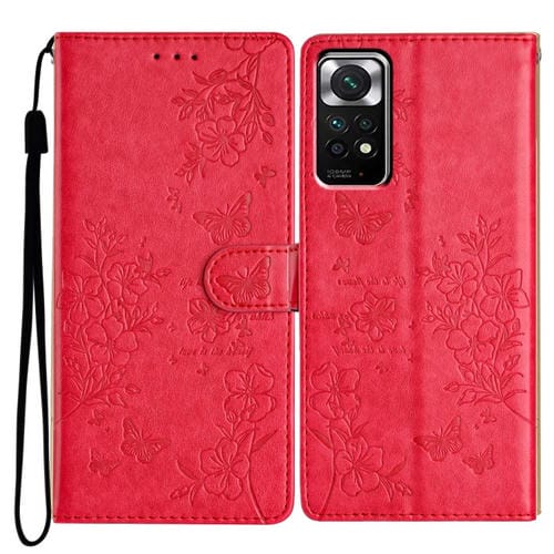 Para Redmi Note 11 4G Funda de Cuero para Teléfono con Mariposas y Flores Globales (Rojo)