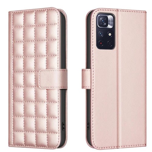 Para Redmi Note 11 / Note 11S Funda de Cuero con Textura Cuadrada para Teléfono (Oro Rosa)