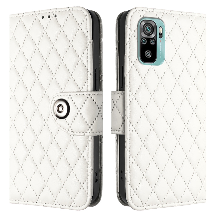 Para Redmi Note 11 Se India Funda para Teléfono con Tapa de Cuero con Textura Rómbica y Cordón (Blanco)