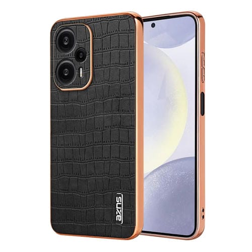 Para Redmi Note 12 Turbo Azns Marco Galvanizado Textura de Cocodrilo Estuche para Teléfono de Cobertura Total (Negro)