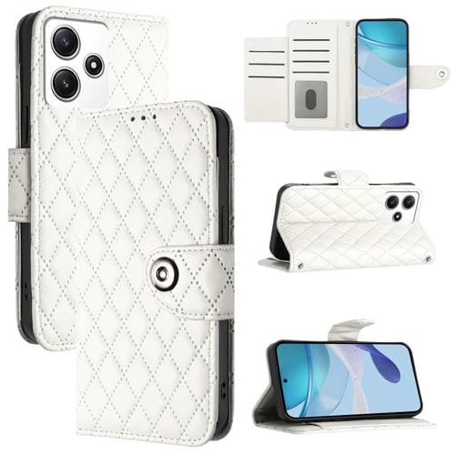 Para Redmi Note 12R Funda de Cuero con Tapa con Textura Rómbica y Cordón (Blanco)