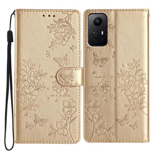 Para Redmi Note 12S Funda de Cuero para Teléfono con Mariposas y Flores (Dorado)
