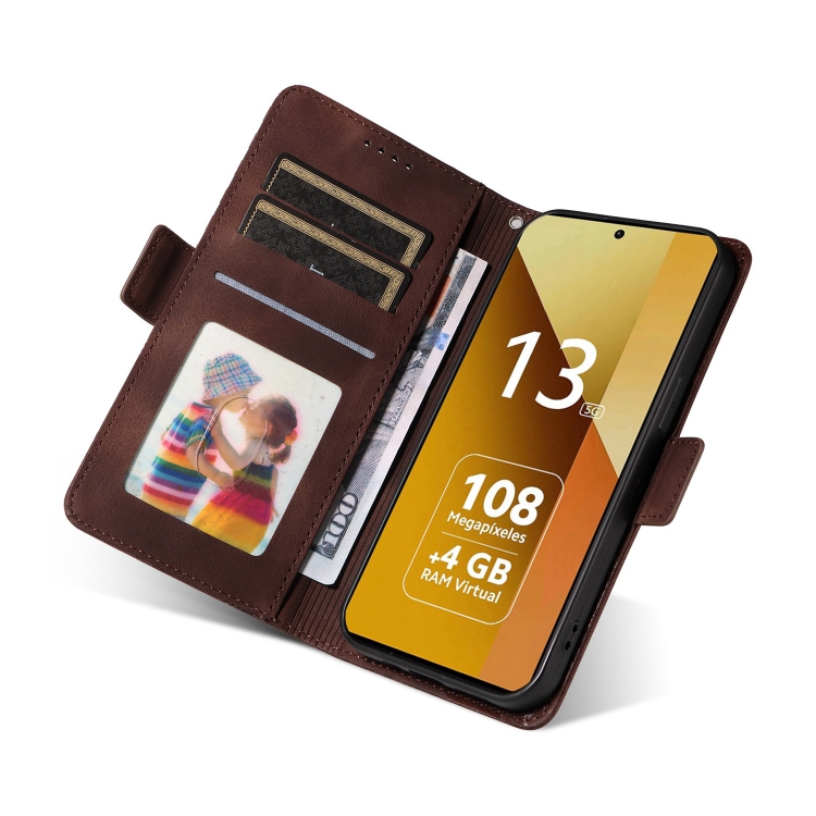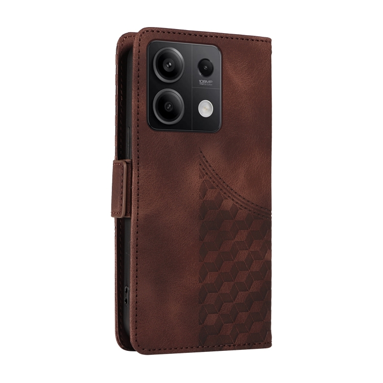Para Redmi Note 13 5G Funda para Teléfono de Cuero Estrellado con Rombos En Relieve (Marrón)
