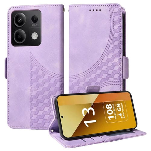 Para Redmi Note 13 5G Funda para Teléfono de Cuero Estrellado con Rombos En Relieve (Púrpura)