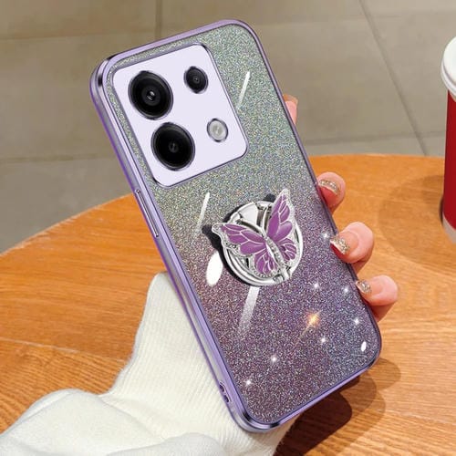 Para Redmi Note 13 Pro Funda para Teléfono de TPU con Soporte de Mariposa con Brillo Degradado Plateado (Púrpura)