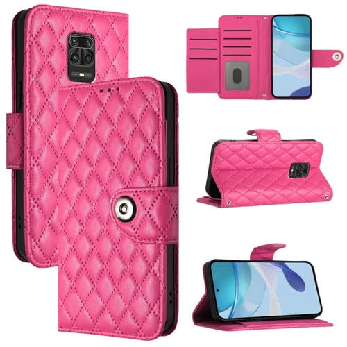 Para Redmi Note 9S / Note 10 Lite Funda para Teléfono de Cuero con Tapa con Textura Rómbica y Cordón (Rojo Rosa)