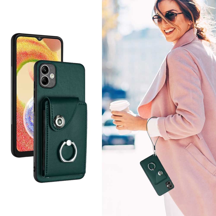 Funda para Teléfono Samsung Galaxy A04E 4G M04 4G F04 4G Bolsa para Tarjeta Soporte para Anillo con Cordón (Verde)