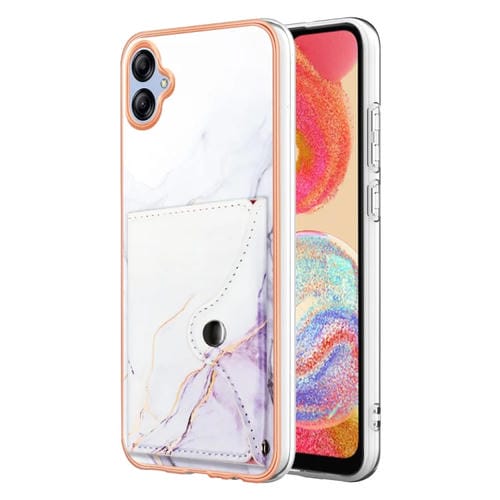 Estuche para Teléfono Samsung Galaxy A04E con Ranura para Tarjeta Imd y Patrón de Mármol (Blanco y Morado)