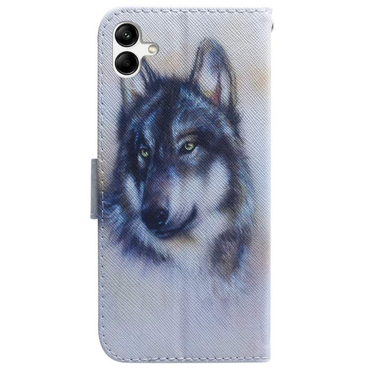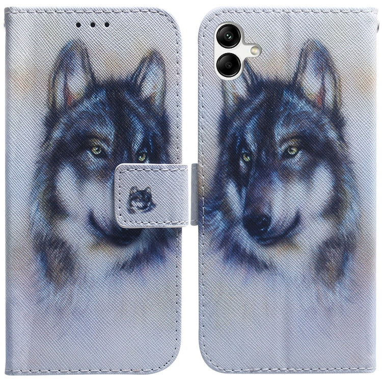 Estuche de Teléfono Samsung Galaxy A04E F04 M04 Cuero con Tapa Dibujo Lobo Blanco