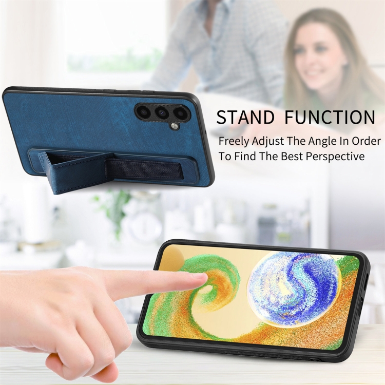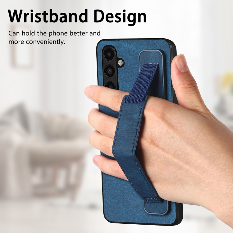 Funda para Samsung Galaxy A04S Retro con Soporte de Pulsera y Parte Trasera de Cuero (Azul)