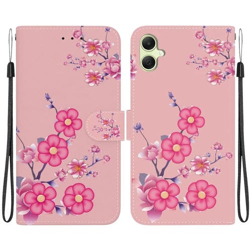 Estuche para Teléfono Samsung Galaxy A05 Cuero Dibujo Coloreado Textura de Cristal (Flores de Cerezo)