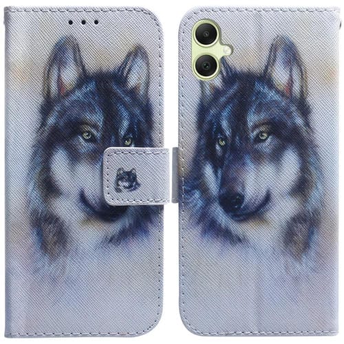 Funda de Cuero para Samsung Galaxy A05 con Tapa y Dibujo Coloreado (Lobo Blanco)