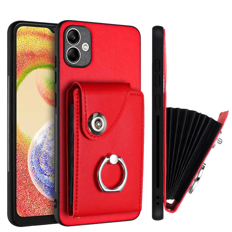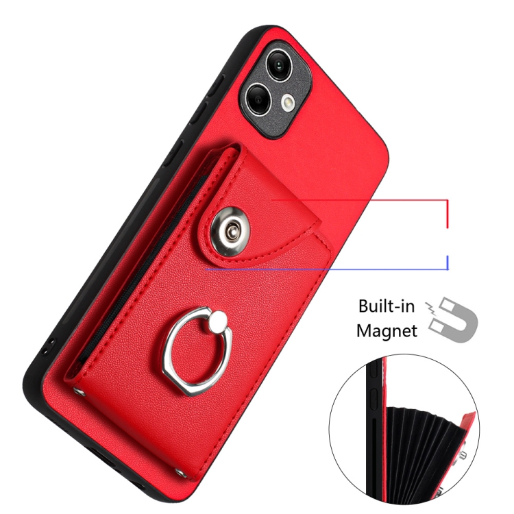 Funda para Teléfono Samsung Galaxy A05 de PU con Soporte para Anillo y Bolsa para Tarjeta (Rojo)