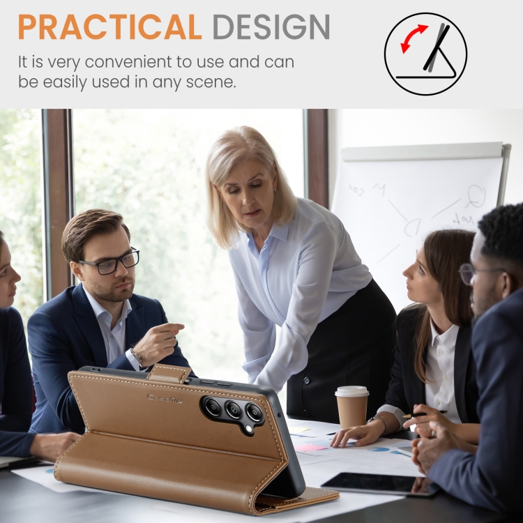 Funda de Cuero Caseme 023 para Samsung Galaxy A05S con Hebilla de Mariposa y Textura Litchi Antirrobo (Marrón)
