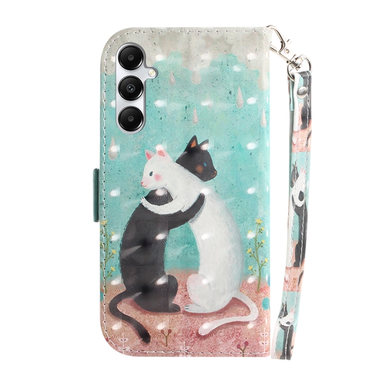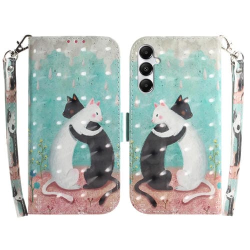 Funda de Cuero Samsung Galaxy A05S Tapa Horizontal 3D (Gato Blanco y Negro)