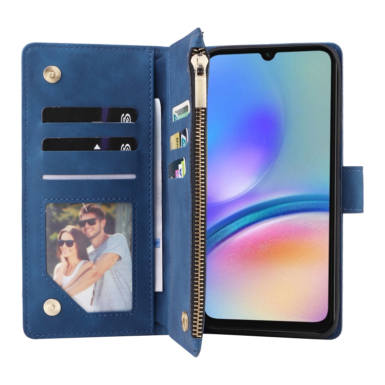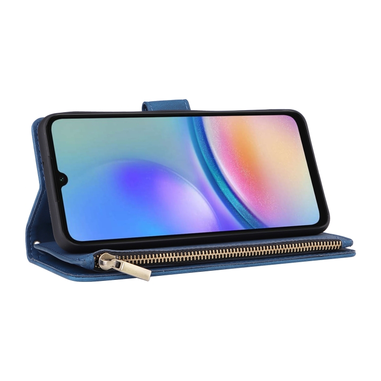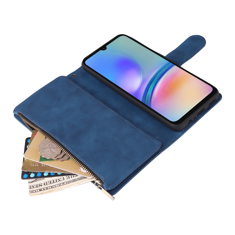 Funda de Cuero para Samsung Galaxy A05S con Billetera y Cremallera Esmerilada Multifuncional (Azul)