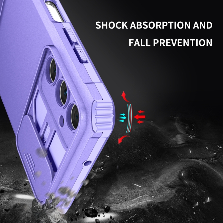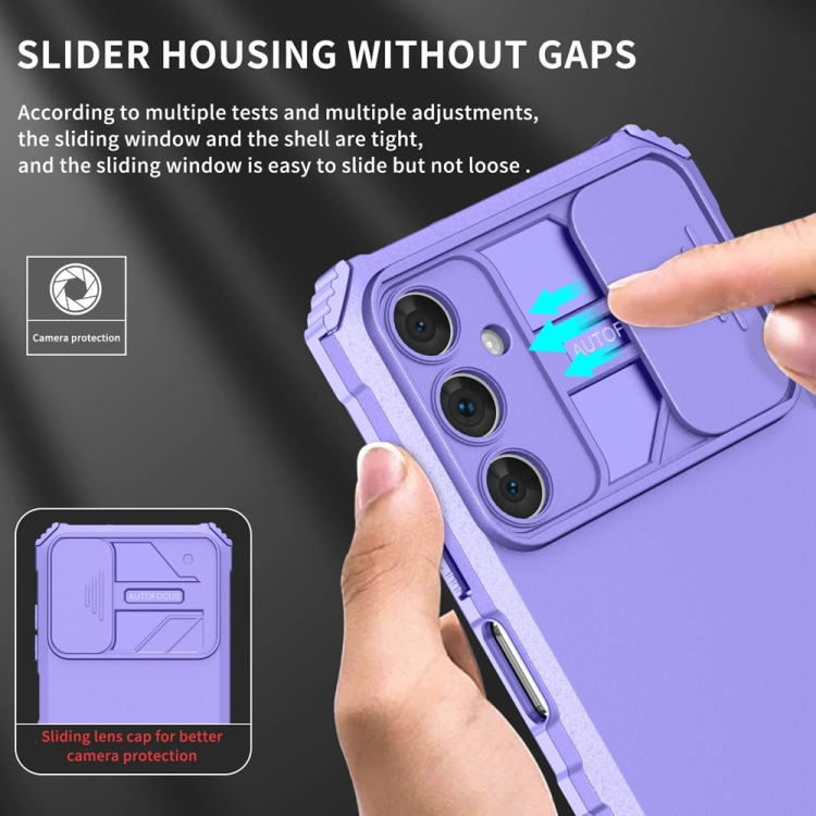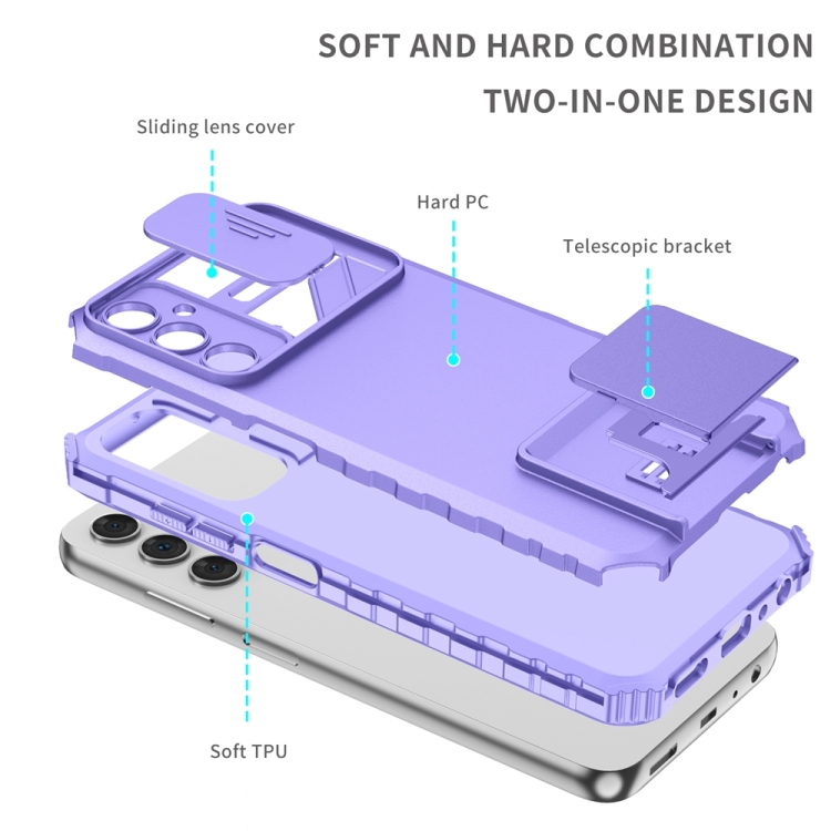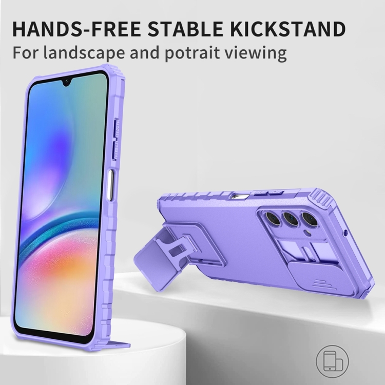 Funda para Teléfono Samsung Galaxy A05S con Soporte Estereoscópico y Escudo de Levas Deslizante (Púrpura)
