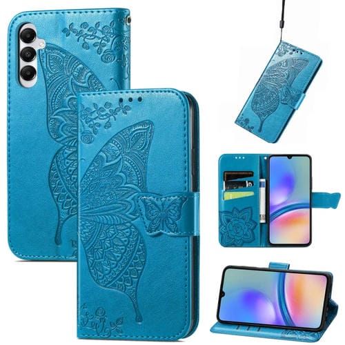 Funda para Teléfono Samsung Galaxy A05S Cuero con Relieve Flor de Amor y Mariposa (Azul)