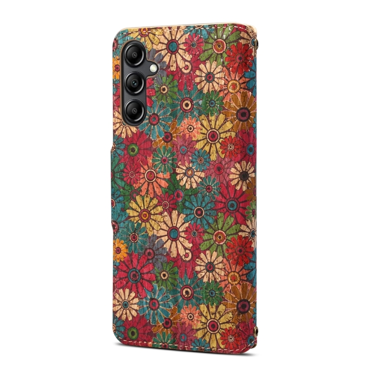 Funda para Teléfono Samsung Galaxy A14 5G Denior Flower Language Series Cuero con Borde de Tela de Corcho (Primavera)