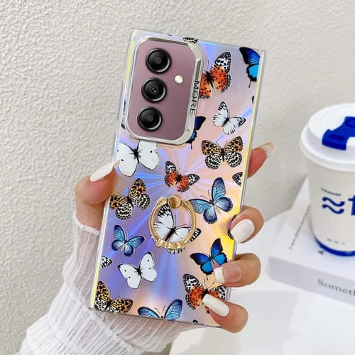 Estuche para teléfono Samsung Galaxy A14 5G con soporte anillo mariposa láser galvanoplastia (Mariposas de color Ab1)