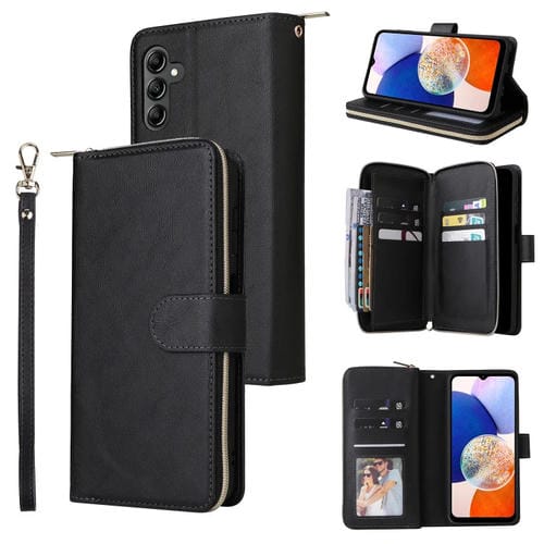 Funda para Teléfono Samsung Galaxy A15 5G Cartera con 9 Ranuras y Cremallera (Negro)