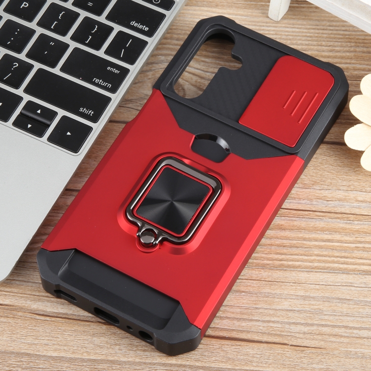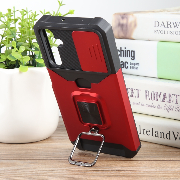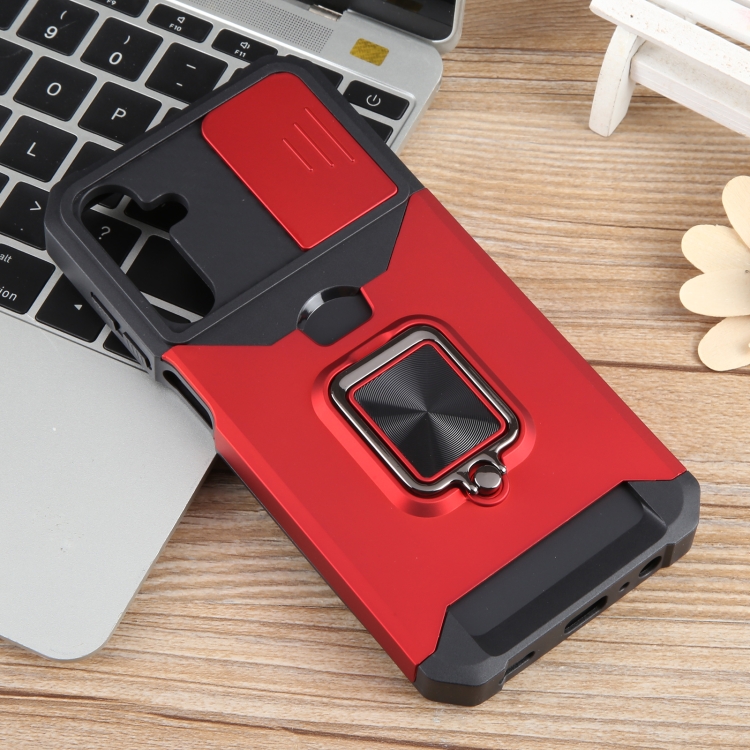 Protector Cámara + Ranura Tarjeta PC para Samsung Galaxy A15 + Funda TPU (Rojo)