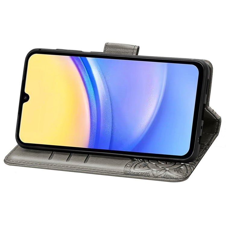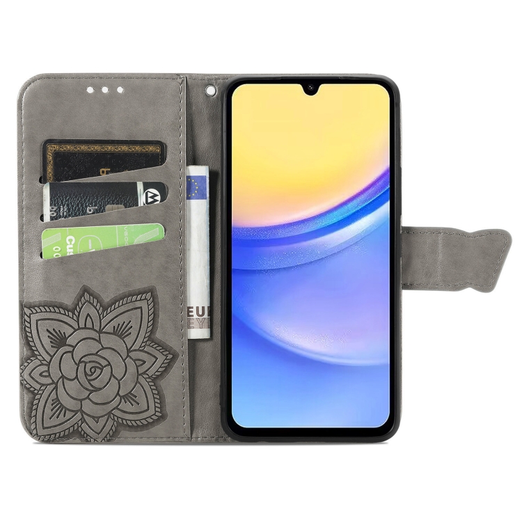Funda para Teléfono Samsung Galaxy A15 Cuero Relieve Flor de Amor y Mariposa (Gris)