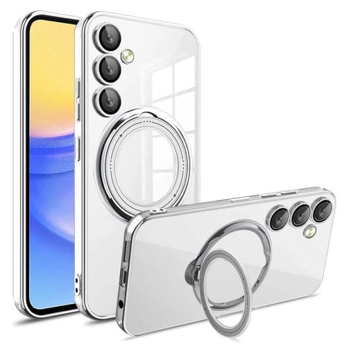 Estuche para Teléfono Samsung Galaxy A15 Galvanoplastia Magsafe Soporte Rotación 360 Grados (Plata)