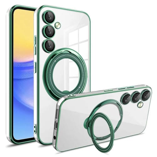 Estuche para Teléfono Samsung Galaxy A15 Galvanoplastia Magsafe Soporte Rotación 360 Grados (Verde Oscuro)