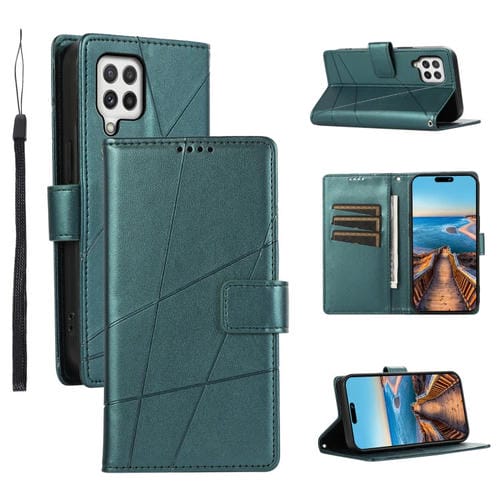 Funda para Teléfono Samsung Galaxy A22 4G Pu con Línea en Relieve Textura Cuero Genuino (Verde)