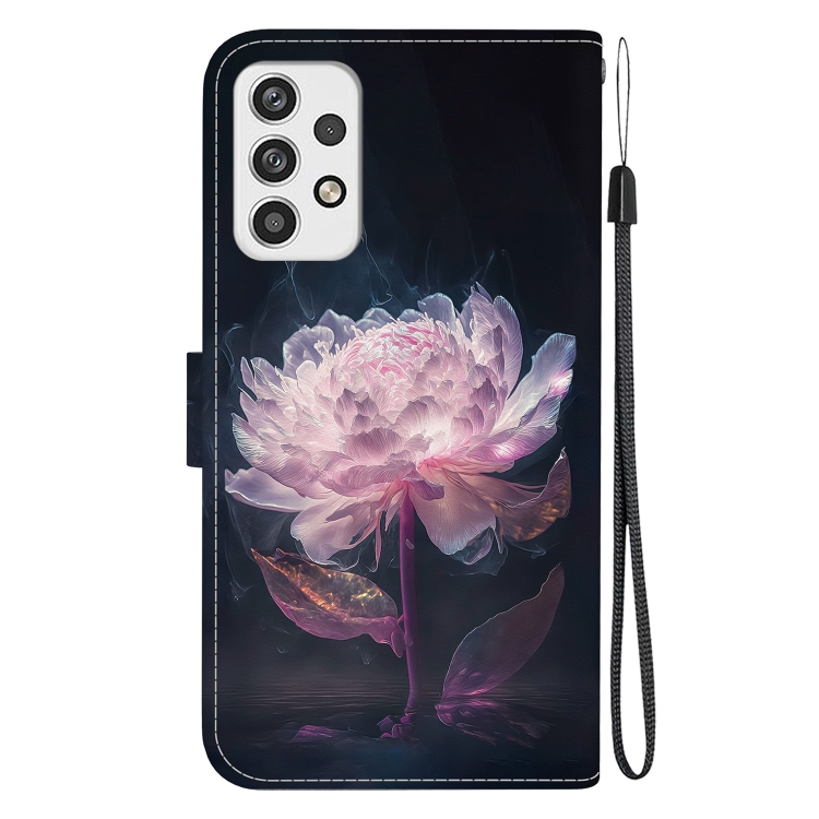 Estuche para teléfono Samsung Galaxy A23 Cuero Dibujo Coloreado Textura de Cristal (Peonía Púrpura)