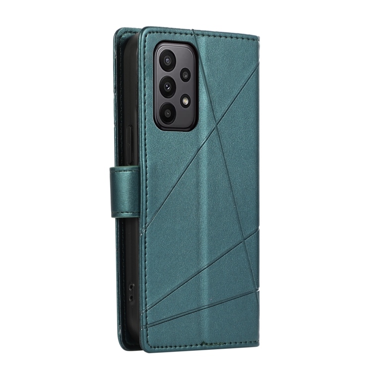 Funda para teléfono Samsung Galaxy A23 con línea en relieve y textura de cuero genuino (Verde)
