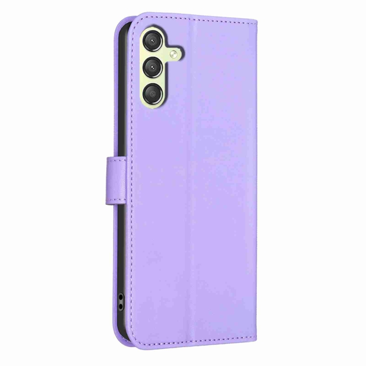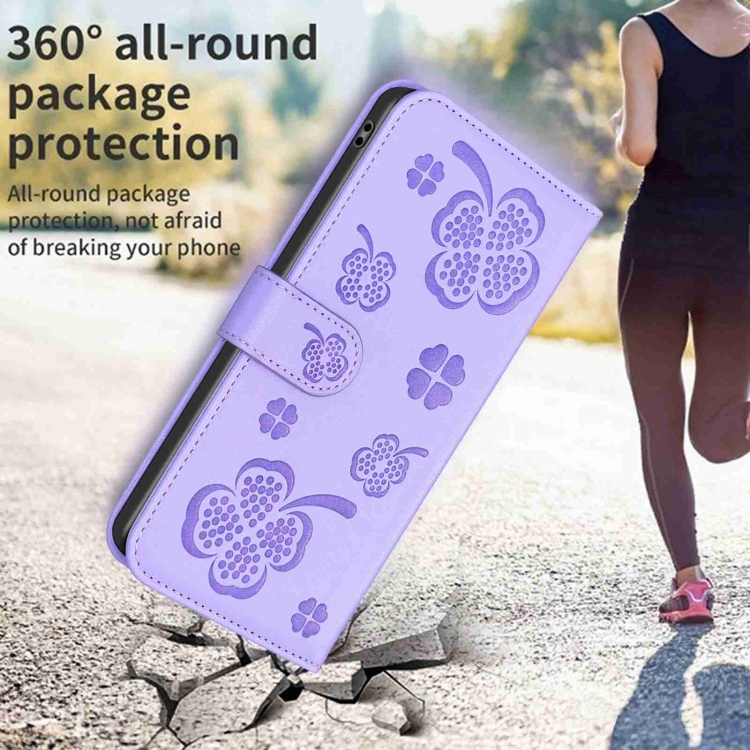 Funda de Cuero Samsung Galaxy A24 4G con Relieve de Cuatro Hojas (Púrpura)